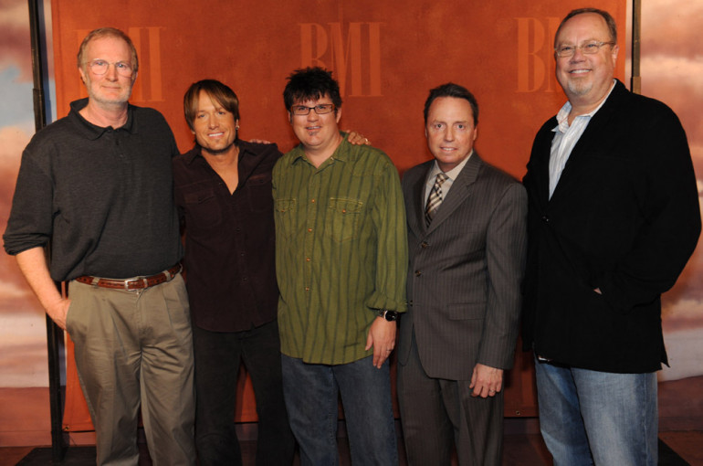 Pictured at the BMI event honoring the career of Keith Urban are Borman Entertainment Nashville President John Grady; Keith Urban; frequent co-writer Monty Powell; BMI’s Jody Williams; and Capitol Records Nashville President/CEO Mike Dungan. (Photo by John Russell)