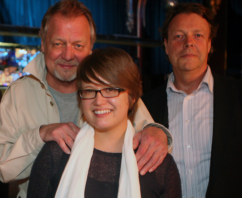 BMI songwriter and TV star David Soul, daughter China Soul and BMI’s Simon Aldridge huddle for a photo during the June edition of the BMI / Hit Sheet monthly showcase at The Cobden Club in London. China performed with her eponymous band.
