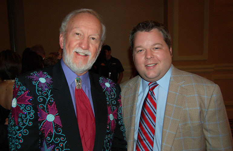 Doyle Lawson and BMI's Bradley Collins enjoy the IBMA Awards Nominees Press Reception, presented by BMI and the IBMA on September 30. (Photo by Drew Maynard)
