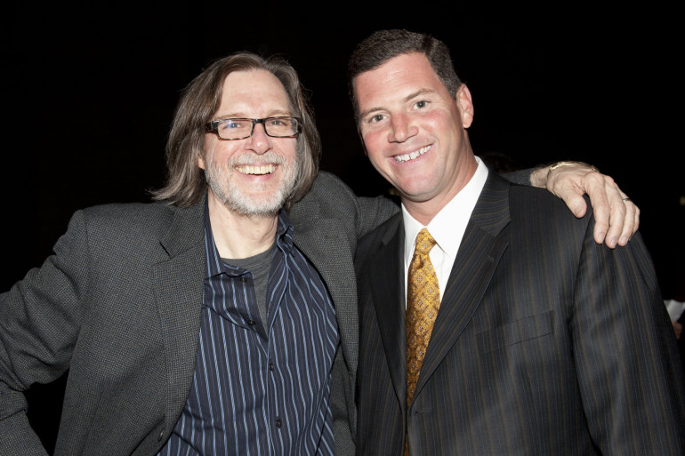 Al Moss and BMI’s Mark Mason hang out at the 2011 IBMA Awards Nominees Press Reception. (Photo by Erika Goldring)