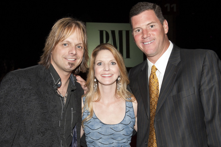 The Roys pause for a photo with BMI’s Mark Mason at the 2011 IBMA Awards Nominees Press Reception. (Photo by Erika Goldring)