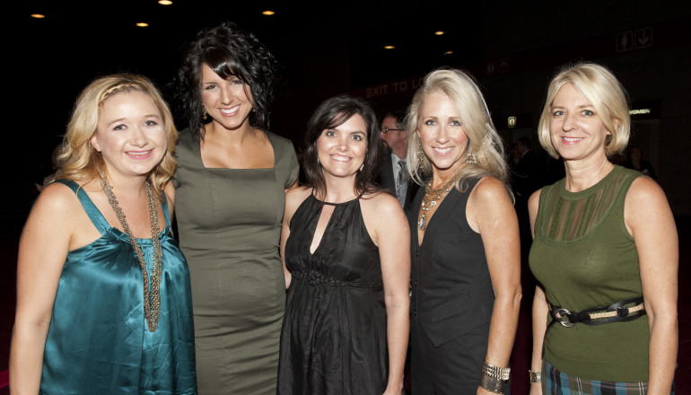 Pictured at the 2011 IBMA Awards Nominees Press Reception are Sugar Hill Records’ Donica Christensen, Big Tractor Music’s Cynthia Anderson, Universal Music Publishing’s Stacey Wilbur, Ray Stevens Music’s Sabrina Shelfer, and BMI’s Kay Clary. (Photo by Erika Goldring)