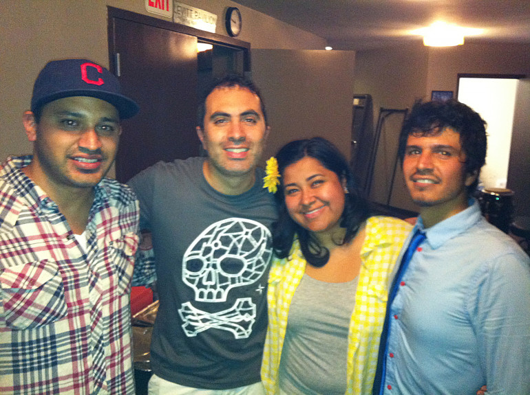 Pictured backstage at the last BMI Summer Nights on September 8 are Levitt Pavilion’s Eddie Cota, Palenke Soultribe’s Juan Diego Borda, BMI’s Marissa Lopez, and Palenke Soultribe’s Andres Erazo.