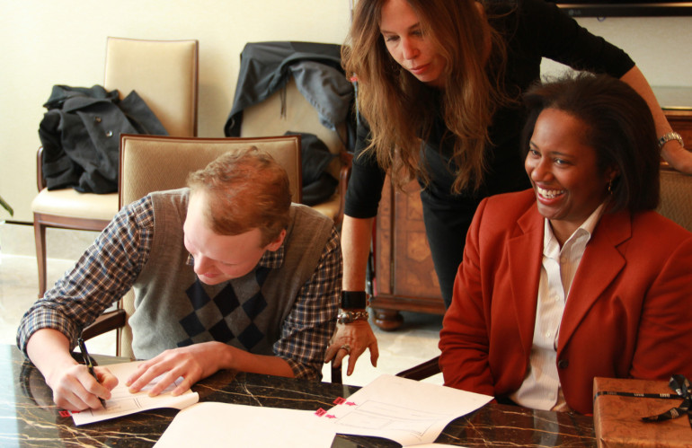Zach Sobiech was welcomed into the BMI family and signed on as an affiliate in the New York offices. Looking on is BMI’s Brooke Morrow and BMI’s Chairman, Susan Davenport Austin.