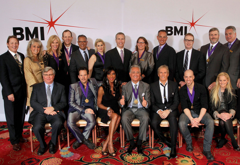 BMI gathers for a photo with NAB honorees Gary Allan, Natalie Cole, Michael Bolton, and Chris Daughtry at the 2013 NAB Dinner. (Photo by Randall Michelson)
