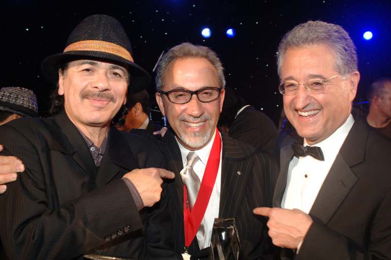 BMI Icon Carlos Santana, BMI Latin Songwriter of the Year Emilio Estefan and BMI President & CEO Del Bryant