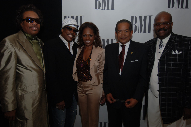 Robert and Charlie Wilson of the GAP Band; BMI's Catherine Brewton; BMI Board of Director Frank Melton; Ronnie Wilson of the GAP Band