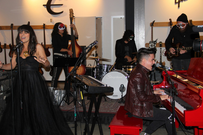 Ximena Muñoz and Mitre performing “Salto Sin Red” during the album release party at the Gibson Brands showroom.