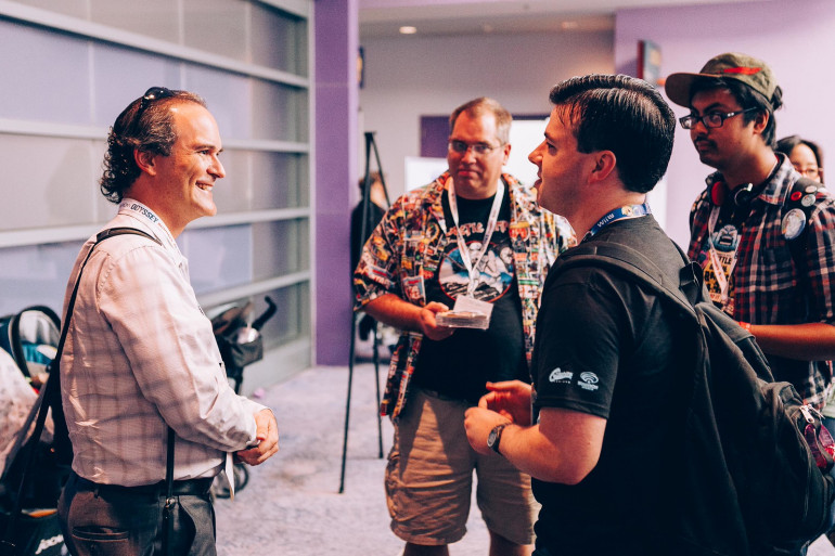 BMI composer Kristopher Carter exchanged pleasantries with fans following BMI’s “Drawing Notes: Inside the Music of Animation” panel.