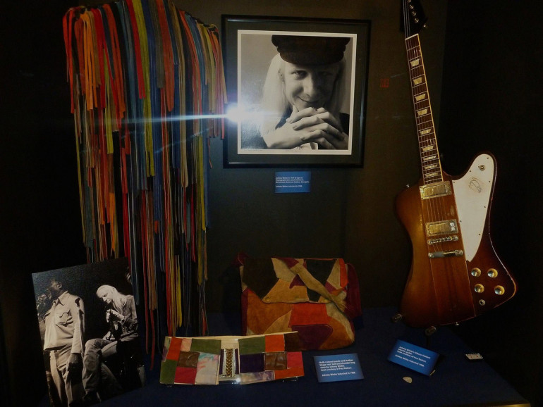 The Johnny Winter display in the Blues Hall of Fame showcases Winter’s iconic guitar. One of Rolling Stones’ top 100 guitarists of all time, Winter was an incredible performer and top-notch producer, who had a hand in 3 GRAMMY-winning albums for Muddy Waters. (Photo by Alan Maites)