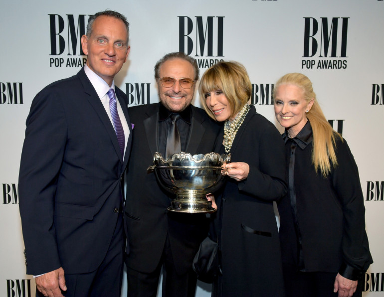 (L-R) BMI President & CEO Mike O’Neill, honorees Barry Mann and Cynthia Weil, and BMI Vice President & General Manager, Writer/Publisher Relations Barbara Cane attend The 64th Annual BMI Pop Awards, honoring Taylor Swift and songwriting duo Mann & Weil, at the Beverly Wilshire Four Seasons Hotel on May 10, 2016 in Beverly Hills, California. (Photo by Lester Cohen/Getty Images for BMI)