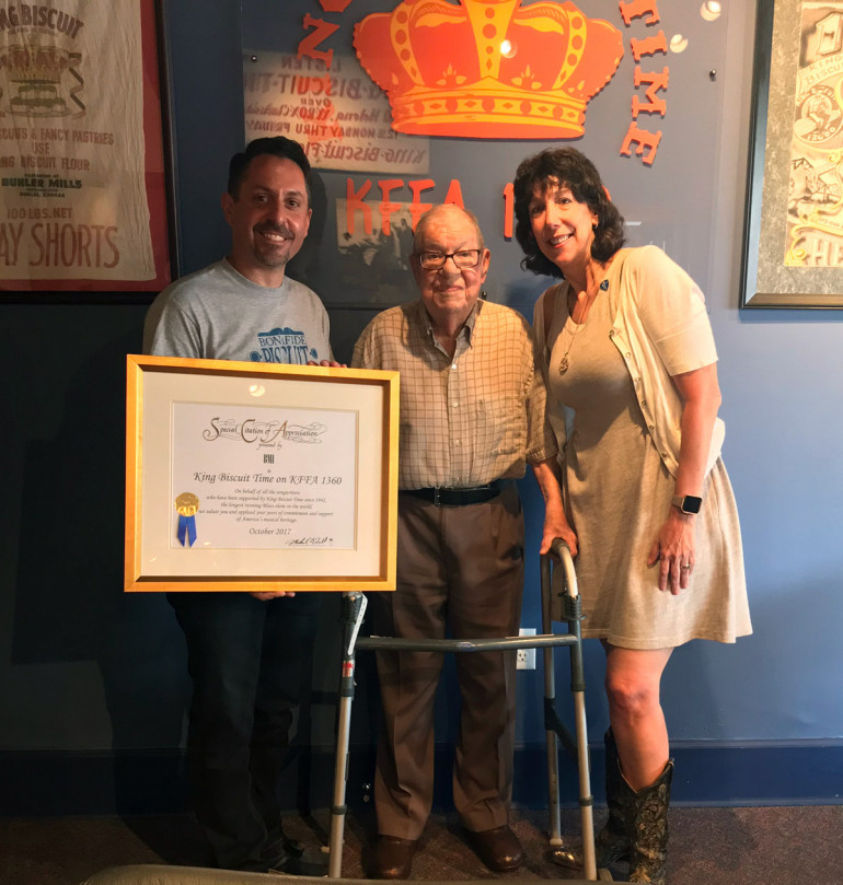Pictured are BMI’s Jeff Syracuse and President and CEO of The Blues Foundation, Barbara Newman, with blues broadcaster Sonny Payne of KFFA 1360. BMI presented the Citation in honor of the station and Payne hosting the longest running radio show in the world since 1941.