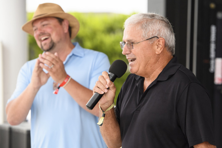 Storme Warren and Mayor Cates speak on stage at the Truman Waterfront Amphitheater during Key West Songwriters Festival on May 13, 2018, in Key West, Florida. (Photo by Erika Goldring)