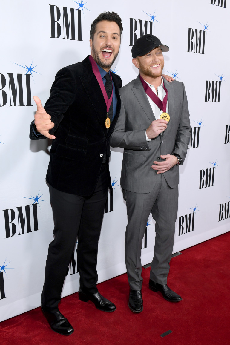 Luke Bryan and Cole Swindell attend the 66th Annual BMI Country Awards on November 13, 2018 in Nashville. (Photo by Jason Kempin /Getty Images for BMI)