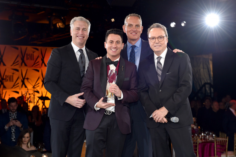 (L-R) Mike Steinberg, Jesse Frasure, Mike O'Neill and Jody Williams pose onstage at the BMI Country Awards 2018 on November 13, 2018 in Nashville. (Photo by John Shearer /Getty Images for BMI)