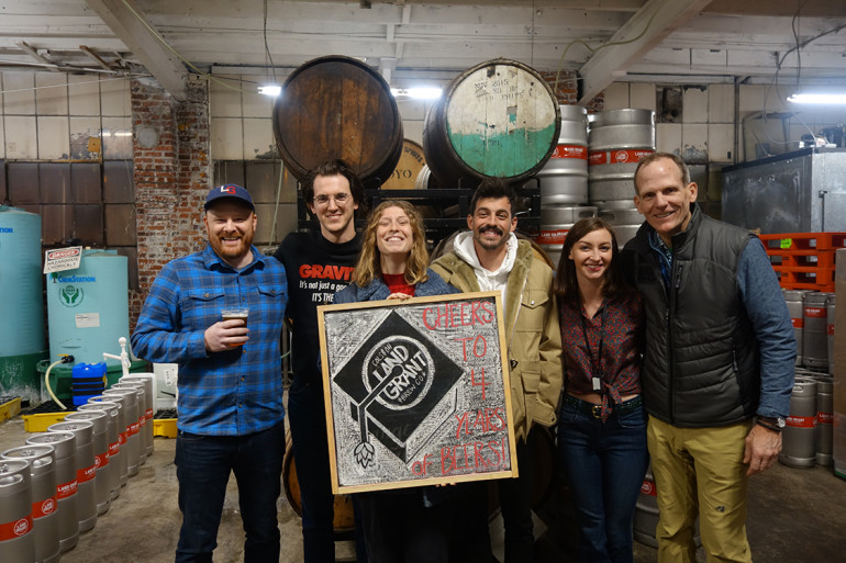 Pictured (L-R) before Liz Cooper & The Stampede’s performance at Land Grant Brewing in Columbus are: Land Grant Brewing owner and President Adam Benner, Liz Cooper and The Stampede’s Grant Prettyman, Liz Cooper and Ryan Usher, Land Grant Brewing’s Entertainment Coordinator Kayla Chandler and BMI’s Dan Spears.
