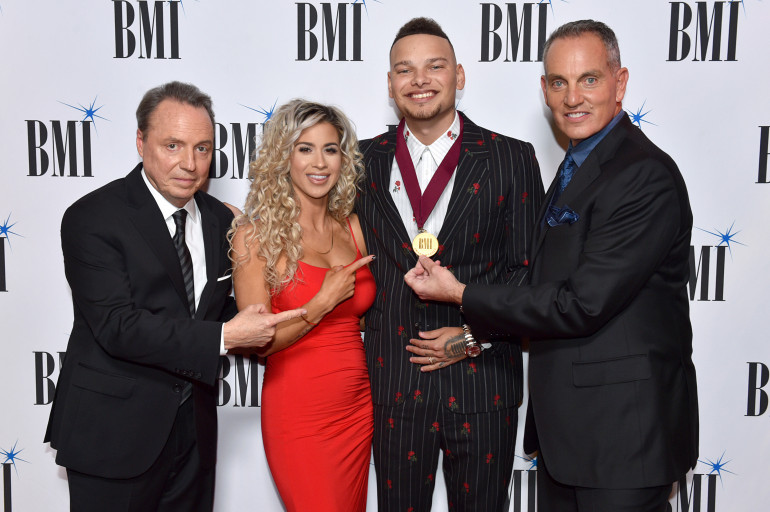 Dwight Yoakam Receives BMI Presidents Award at the 2019 BMI Country Awards (L-R) BMI Vice President, Creative, Jody Williams, Katelyn Jae, Kane Brown and BMI President & CEO Mike O'Neill attend the 67th Annual Country Awards Dinner at BMI on November 12, 2019 in Nashville, Tennessee. (Photo by John Shearer /Getty Images)