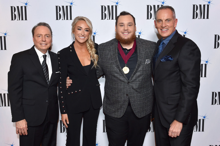 Dwight Yoakam Receives BMI Presidents Award at the 2019 BMI Country Awards (L-R) BMI Vice President, Creative, Jody Williams, Nicole Hocking, Luke Combs and BMI President & CEO Mike O'Neill attend the 67th Annual Country Awards Dinner at BMI on November 12, 2019 in Nashville, Tennessee. (Photo by John Shearer /Getty Images)