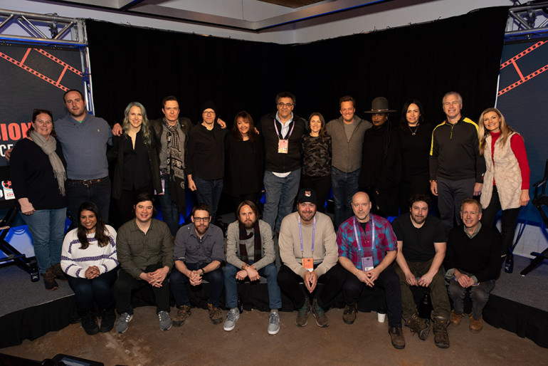 Pictured (L-R) during the roundtable are (standing): BMI’s Alison Smith, composer Anthony Willis (“Promising Young Woman”), director Josephine Decker (“Shirley”), composers Fil Eisler (“Us Kids”) and Ed Shearmur (“Four Good Days”), BMI’s Doreen Ringer-Ross, director Rodrigo García (“Four Good Days”), director Amanda McBaine (“Boys State”), composer Nathan Barr (“Uncle Frank”), composer Tamar-kali (“Shirley”) and BMI’s Alex Flores, Mike Steinberg and Natalie Baartz. (sitting): BMI’s Reema Iqbal and composer Joe Wong (“Siempre, Luis”) director David Brucker and composer Ben Lovett (“The Night House”), director Andrew Cohn (“The Last Shift”), composer T. Griffin (“Boys State”), composer Mark Orton (“The Last Shift”) and Director of the Sundance Institute Film Music Program, Peter Golub. (Photo by John Mazlish for BMI)