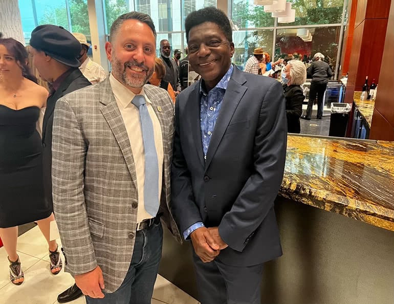 May 17, 2022 Pictured at the Blues Hall of Fame induction ceremony are Gerald McClendon and BMI’s Jeff Syracuse.