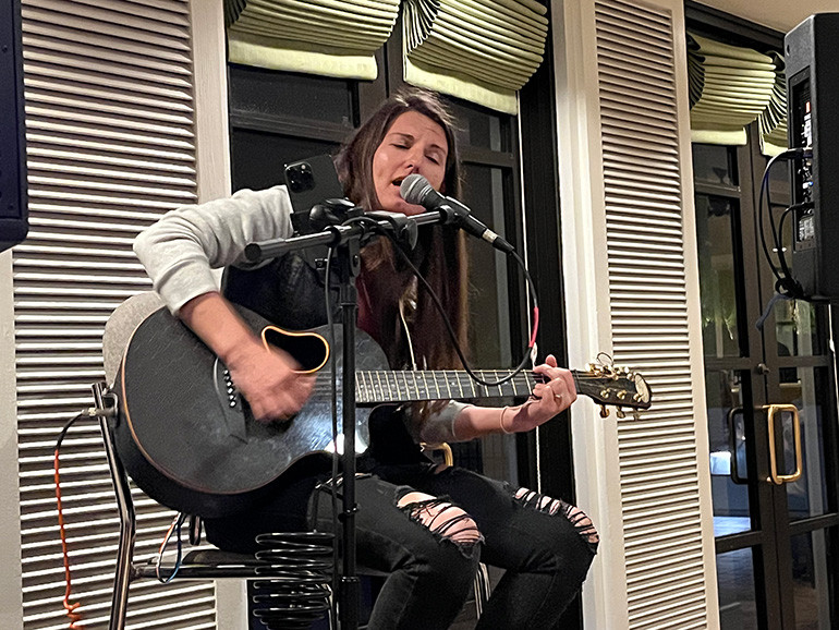 February 21, 2023 BMI Songwriter and ‘Voice’ Alum Brings Her Talents to Gathering of Radio Industry Leaders BMI songwriter Sheena Brook performing at the RAB Winter Board Meeting.