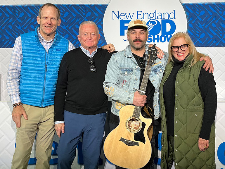 Pictured before BMI songwriter Sam James’ performance at the New England Food Show in Boston (L to R): BMI’s Dan Spears, Massachusetts Restaurant Association Vice President of Operations Kerry Miller, BMI songwriter Sam James, Rhode Island Hospitality Association CEO Dale Venturini.