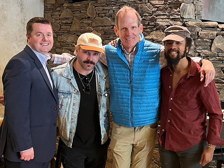 Pictured at the New England Food Show Industry Night Out Party (L to R): Massachusetts Restaurant Association CEO Steve Clark, BMI songwriter Sam James, BMI’s Dan Spears, BMI songwriter Dwayne Haggins.