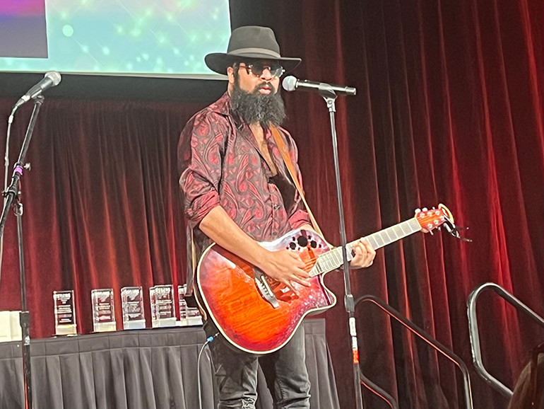 BMI Brings in Voice Finalist to help Celebrate Excellence in Arizona’s Hotel and Tourism Industry BMI songwriter Nelson Cade performing at the 2023 AZLTA Stars of Industry Awards.