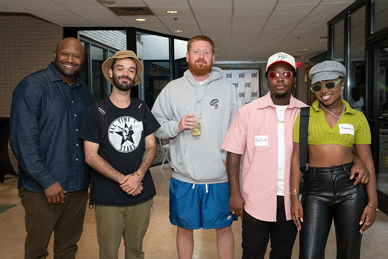 BMI’s Next Big Wave Mixer Hosts Pop-Infused Songwriters in Nashville BMI’s Shannon Sanders hangs with Case Arnold, Zack Cobb, Tim Gent, and Jamiah Hudson at the BMI Next Big Wave Mixer, sponsored by Studio Bank. (Photo by Steve Lowry for BMI)
