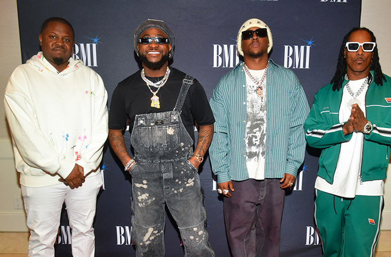 D’Mile, Davido, Hit-Boy and Big Hit attend BMI’s How I Wrote That Song – GRAMMY Edition at The London West Hollywood in Los Angeles, CA on February 2, 2024. (Photo by Prince Williams for BMI.)