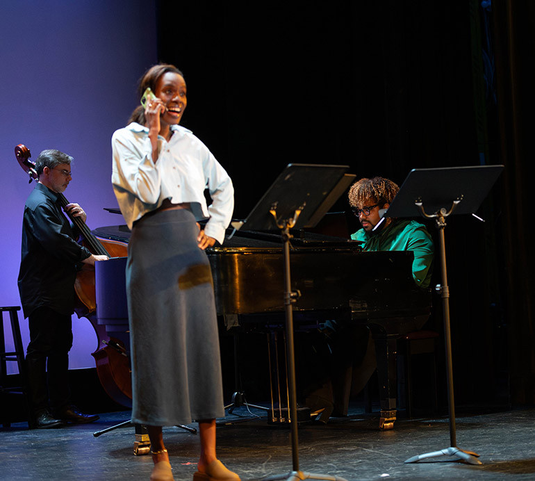 Ashley Jenkins and Sophia Schott perform “But You’ll Be Fine,” lyrics by Tia DeShazor and music by Derrick Byers, at the BMI Lehman Engel Musical Theatre Workshop Fall Showcase on Thursday, October 24, 2024 at the Marjorie S. Deane Little Theatre. (Photo by Brian Berson for BMI.)