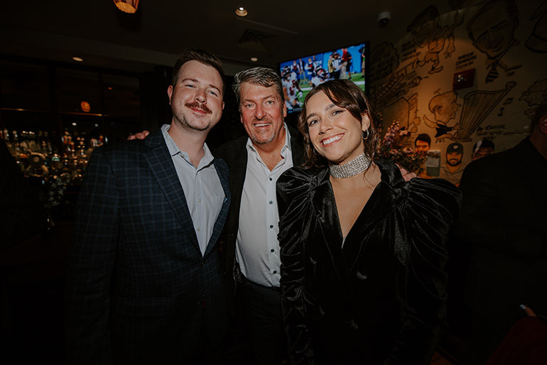 BMI’s Josh Tomlinson, WP Global’s Jeff Baker and BMI’s Claire Dodelin hang out at the CMA Awards pre-party hosted by BMI. (Photo by Rachel Deeb for BMI)