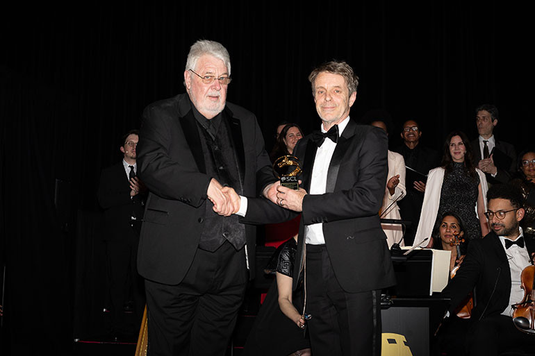 Ashley Irwin (SCL President) and Harry Gregson-Williams at the 2025 SCL Awards at the Skirball Cultural Center in Los Angeles. (Photo by courtesy of Teal Moss Photography.)