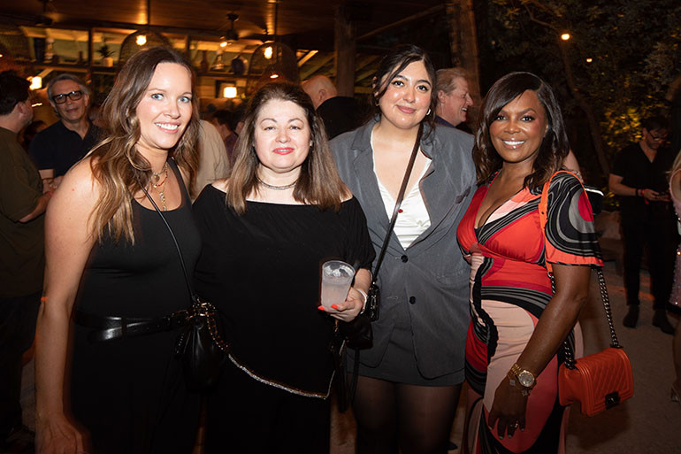(L-R) Frannie Daughrity, BMI’s Maggie Ortiz, Alondra Lopez and Catherine Brewton during BMI’s Sunset Sessions at Soho Beach House in Miami on March 5, 2025. (Photo by Natalia Aguilera for BMI.)