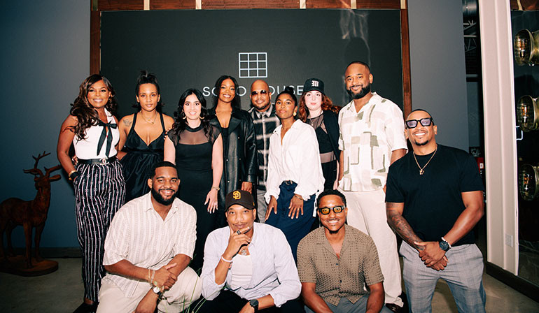 (back) BMI’s Catherine Brewton, Soho House’s Autumn Merritt, UTA’s Dina Marto, Ari Lennox, Tricky Stewart, Soho House’s Alex Freeman, Soho House’s Ashley O'Neill, BMI’s Byron Wright, (front) and Milk and Cookies’ Jhordan Gibbs, Greg Burton, Chase Freeman, and Kevin Reese attend An Evening with Ari Lennox on June 11, 2025 in Atlanta, GA. (Photo by Yvette Glasco Images for Soho House.)