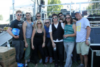 C3 Presents' Amy Corbin (third from left) joins BMI's Mark Mason (far right) and Space Capone backstage before the band's set on the BMI Loufest Stage Saturday afternoon. View Photo