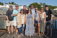 (L-R) Bradley Collins, David Preston, Dani Holliday, artist Dylan Altman, Nadine Grossman-Orr, Storme Warren, Leslie Roberts, Nina Carter and Josh Tomlinson gather for a photo during the Key West Songwriters Festival Kick Off Party at the Sunset Pier on May 10, 2017. View Photo