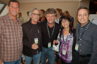 Pictured at the BMI Derek Hoke showcase during the 2010 Americana Music Festival and Conference are BMI’s Mark Mason, Folk Alliance’s Louis Meyers, Americana Music Association’s Jed Hilly, McGuckin PR’s Jill McGuckin, and BMI’s Jody Williams. View Photo