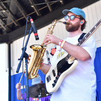 A member of Easy Life easily juggles two instruments at once on the BMI Mermaid Stage. View Photo