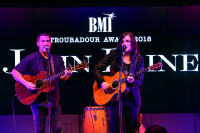 Gillian Welch and David Rawlings perform “It’s A Big Old Goofy World” during the 2018 Troubadour Award ceremony. View Photo