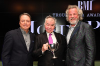 BMI’s Jody Williams, John Prine and Robert Earl Keen pose following the 2018 Troubadour Award ceremony. View Photo