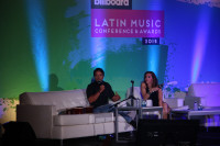BMI singer/songwriter Luis Fonsi engages with attendees and Billboard Executive Director of Content and Programming for Latin Music and Entertainment, Leila Cobo. View Photo