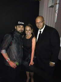 El Dusty, BMI’s Delia Orjuela, and DJ Buddha pose together at the Universal Music Billboard Latin Awards afterparty. View Photo