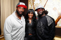 Polow da Don, BMI’s Catherine Brewton, and T-Pain enjoy the BMI holiday party in Atlanta. View Photo