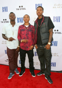 (L-R) Chante "Yung" Glee, Cahron "JayAre" Childs and Corey "C-Smoove" Fowler of the rap group Cali Swag District arrive at the 11th Annual BMI Urban Awards held at the Pantages Theatre on August 26, 2011 in Hollywood, California. View Photo