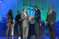 (L-R) BMI Vice President Catherine Brewton, Rapper Dr. Dre, BMI President and CEO Del Bryant, BMI 2011 Urban Awards Icon Snoop Dogg and guest speak onstage during the 11th Annual BMI Urban Awards held at the Pantages Theatre on August 26, 2011 in Hollywood, California. View Photo
