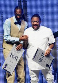 Recording artist Snoop Dogg (L) and producer DJ Mustard accept awards onstage at the 2015 BMI R&B/Hip-Hop Awards at Saban Theatre on August 28, 2015 in Beverly Hills, California. View Photo