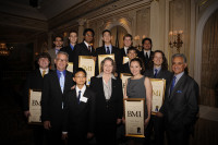 The BMI Foundation held its 58th Annual BMI Student Composer Awards May 17 at the Jumeirah Essex House Hotel in New York, where eleven young classical composers were recognized with scholarship grants totaling $20,000 for their superior creative talent. Pictured at the ceremony are (back row) winners Andrew Allen, Paul Dooley, Subaram Raman, Derrick Wang, Eric Guinivan, Michael-Thomas Foumai; (front… View Photo