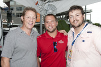 BMI’s Clay Bradley and Mason Hunter gather for a photo with Texas Roadhouse's Tyler Durham at the BMI Tailgate Party during CMA Festival outside LP Field on June 5, 2014, in Nashville, TN. View Photo