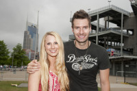 Artists Sara Haze and David Fanning pause for a photo at the BMI Tailgate Party during CMA Festival outside LP Field on June 5, 2014, in Nashville, TN. View Photo